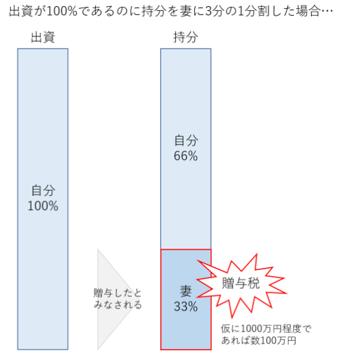 持分が出資比率とずれてくると差分に贈与税がかかり余計な出費が発生するためです。
