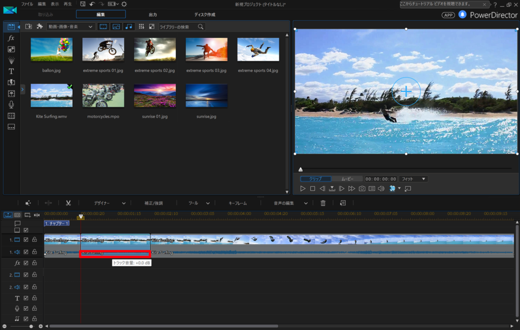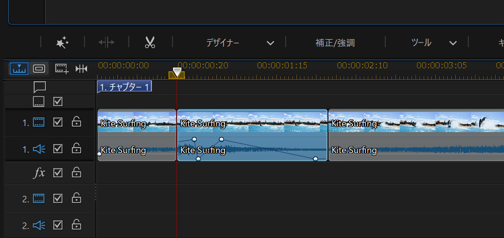 Cyberlink PowerDirector15で動画の一部分の音量を調整します。