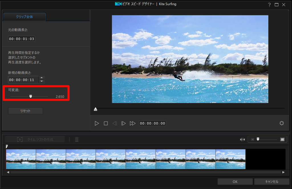 PowerDirectorの速度調整は非常に分かりやすく助かります。