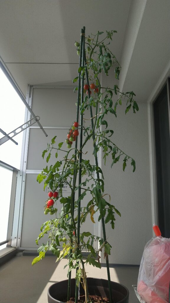 ミニトマトを苗から育てて3ヶ月が過ぎたため寿命が近づいてきています。