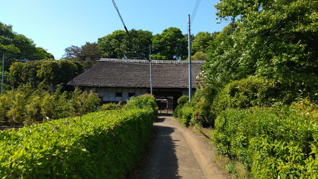大谷ホタルの里、加田屋新田を過ぎてなお歩き車通りの多い道路に突き当たると、旧坂東家住宅に到着しました。