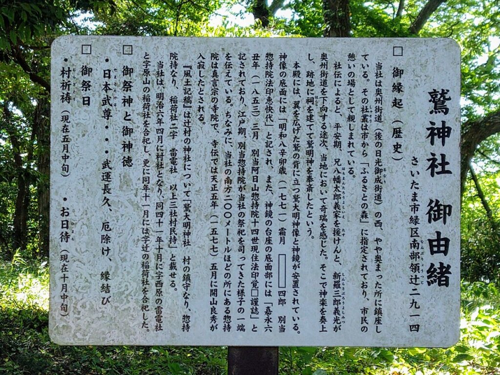 鷲神社自体は、平安期に八幡太郎義家が奥州に下向する際に立てられたと社伝では伝わっているようです。