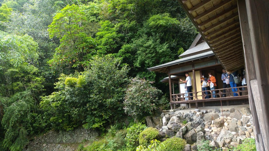 夢想庵は高い位置に建てられており細い階段を登ります。